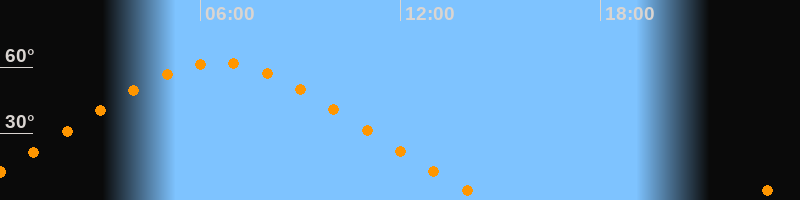 | Höchster Stand (Kulmination) | 06:31 Uhr (h = 62°) |