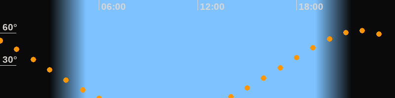 | Aufgang | 13:46 Uhr im Nordosten (αAz = 51,5°) |