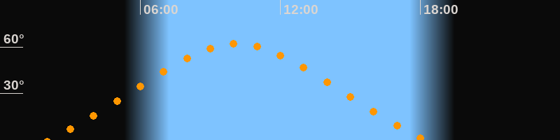 | Höchster Stand (Kulmination) | 10:08 Uhr (h = 62°) |