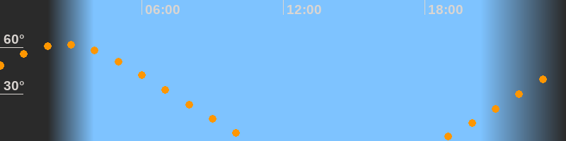 | Aufgang | 18:30 Uhr im Nordosten (αAz = 51,5°) |