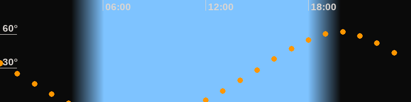 | Höchster Stand (Kulmination) | 19:47 Uhr (h = 62°) |