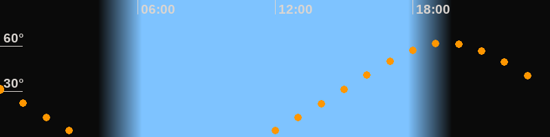 | Aufgang | 11:22 Uhr im Nordosten (αAz = 51,5°) |