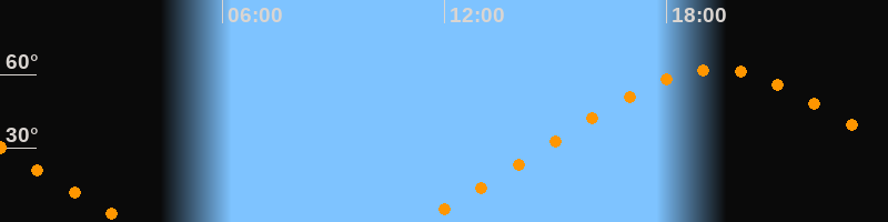 | Aufgang | 11:14 Uhr im Nordosten (αAz = 51,5°) |