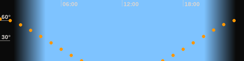 | Untergang | 08:07 Uhr im Nordwesten (αAz = 308,5°) |