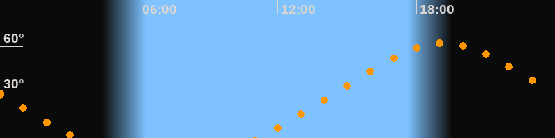 | Höchster Stand (Kulmination) | 19:11 Uhr (h = 62°) |