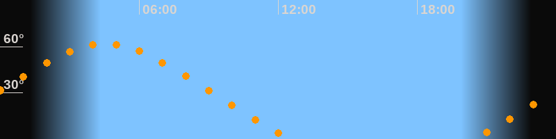 | Untergang | 12:36 Uhr im Nordwesten (αAz = 308,5°) |