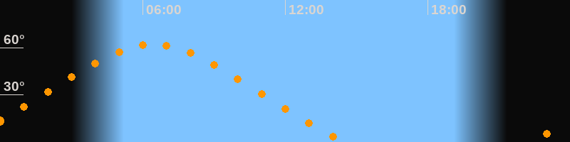 | Höchster Stand (Kulmination) | 06:26 Uhr (h = 62°) |