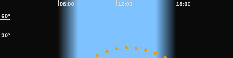 | Aufgang | 09:16 Uhr im Südosten (αAz = 127,5°) |