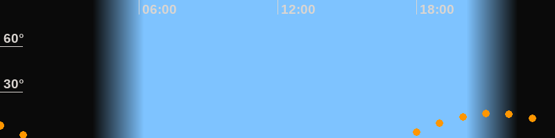 | Untergang | 01:18 Uhr im Südwesten (αAz = 232,5°) |