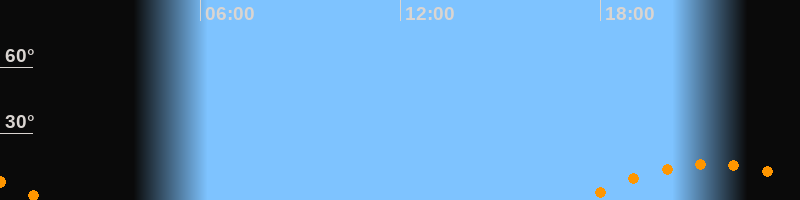| Aufgang | 17:24 Uhr im Südosten (αAz = 127,5°) |