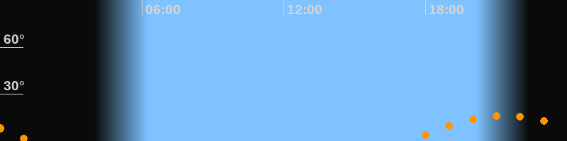 | Aufgang | 17:21 Uhr im Südosten (αAz = 127,5°) |