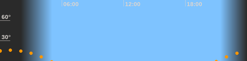| Untergang | 04:58 Uhr im Südwesten (αAz = 232,5°) |