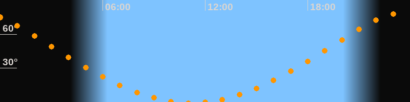23:09 Uhr (h = 77,8°)