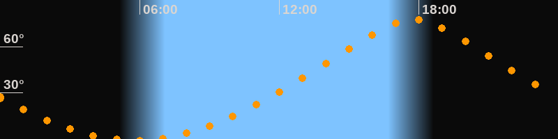 Höchster Stand (Kulmination)17:46 Uhr (h = 77,8°)