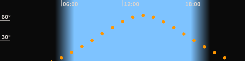 | Höchster Stand (Kulmination) | 13:59 Uhr (h = 67,6°) |
