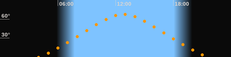 | Höchster Stand (Kulmination) | 12:49 Uhr (h = 67,6°) |