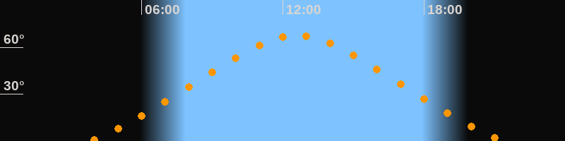 | Höchster Stand (Kulmination) | 12:35 Uhr (h = 67,6°) |