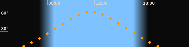 | Höchster Stand (Kulmination) | 11:32 Uhr (h = 67,6°) |