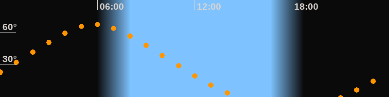 | Höchster Stand (Kulmination) | 05:50 Uhr (h = 67,6°) |