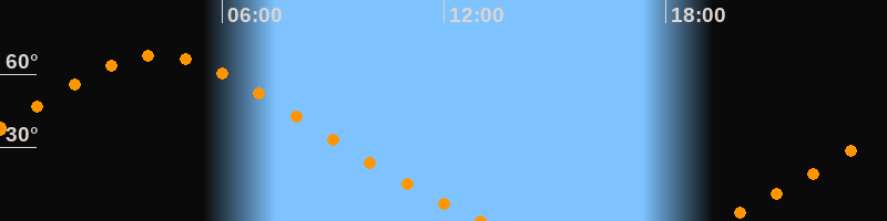 | Aufgang | 19:23 Uhr im Nordosten (αAz = 40,3°) |