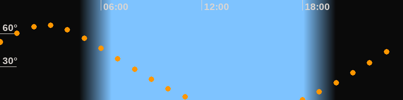 | Aufgang | 17:49 Uhr im Nordosten (αAz = 40,3°) |