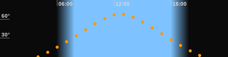 | Höchster Stand (Kulmination) | 12:39 Uhr (h = 67,6°) |