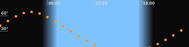 Höchster Stand (Kulmination)03:55 Uhr (h = 67,6°)