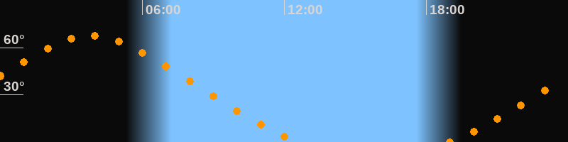 | Höchster Stand (Kulmination) | 03:49 Uhr (h = 67,6°) |
