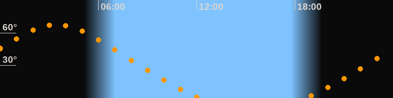 Höchster Stand (Kulmination)03:26 Uhr (h = 67,6°)