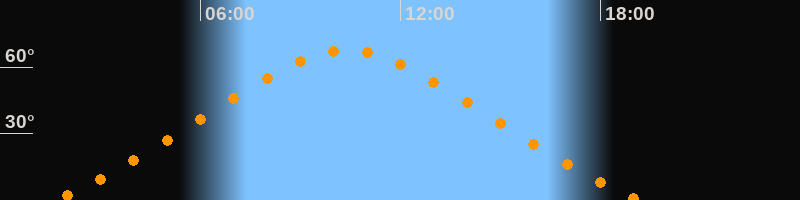 Höchster Stand (Kulmination)10:24 Uhr (h = 67,6°)