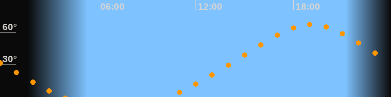 | Höchster Stand (Kulmination) | 19:05 Uhr (h = 67,6°) |
