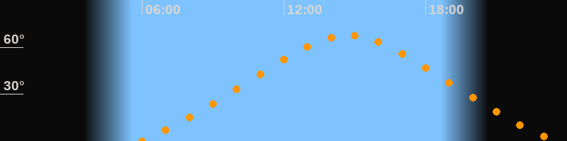 | Höchster Stand (Kulmination) | 14:43 Uhr (h = 67,6°) |