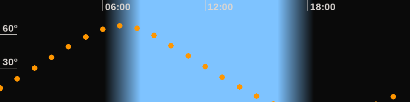 | Höchster Stand (Kulmination) | 07:04 Uhr (h = 67,6°) |