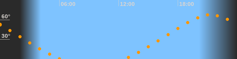 | Aufgang | 12:28 Uhr im Nordosten (αAz = 40,3°) |