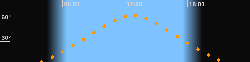 | Höchster Stand (Kulmination) | 12:43 Uhr (h = 67,6°) |