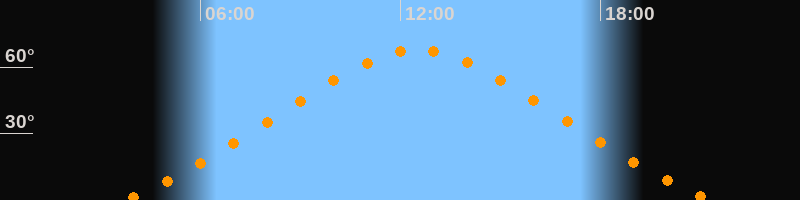 | Höchster Stand (Kulmination) | 12:31 Uhr (h = 67,6°) |