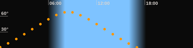 | Höchster Stand (Kulmination) | 08:29 Uhr (h = 67,6°) |