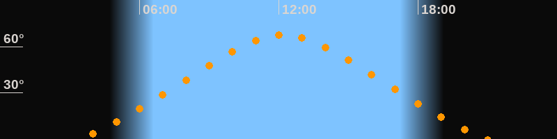 | Höchster Stand (Kulmination) | 12:10 Uhr (h = 67,6°) |