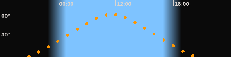 | Höchster Stand (Kulmination) | 11:35 Uhr (h = 67,6°) |