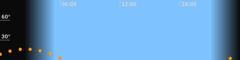 | Untergang | 06:36 Uhr im Südwesten (αAz = 233,1°) |