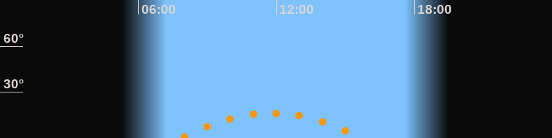 | Höchster Stand (Kulmination) | 11:46 Uhr (h = 16,5°) |