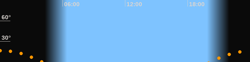 | Untergang | 04:08 Uhr im Südwesten (αAz = 233,1°) |