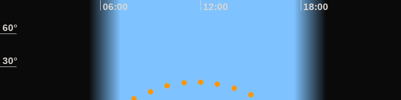 | Höchster Stand (Kulmination) | 11:45 Uhr (h = 16,5°) |
