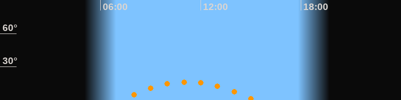| Höchster Stand (Kulmination) | 11:13 Uhr (h = 16,5°) |