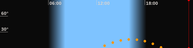 | Aufgang | 12:16 Uhr im Südosten (αAz = 126,9°) |