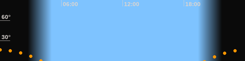 | Untergang | 04:06 Uhr im Südwesten (αAz = 233,1°) |