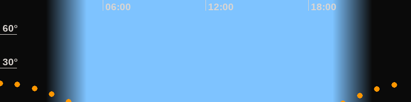 | Untergang | 04:07 Uhr im Südwesten (αAz = 233,1°) |