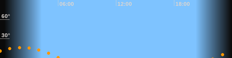 | Untergang | 06:11 Uhr im Südwesten (αAz = 233,1°) |