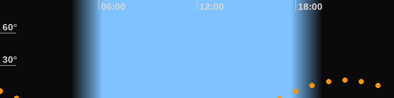| Aufgang | 17:00 Uhr im Südosten (αAz = 126,9°) |