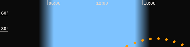 | Aufgang | 15:42 Uhr im Südosten (αAz = 126,9°) |